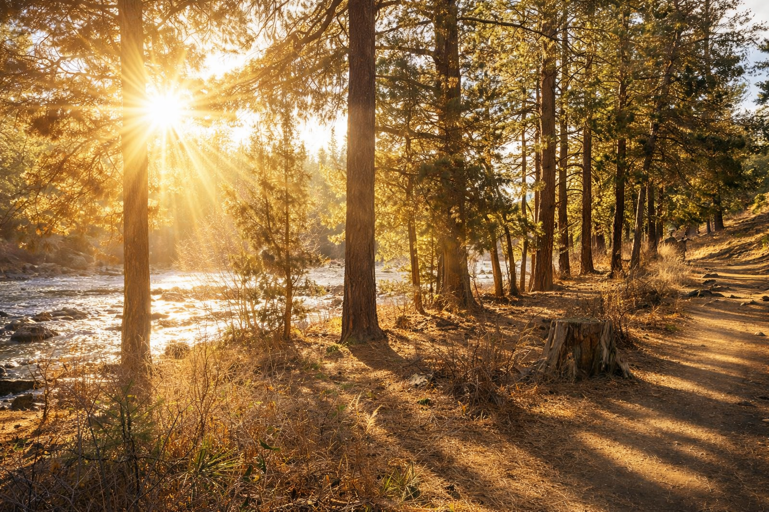 Central Oregon averages 300+ days of sunshine a year. Even in winter, it's common to have bright blue skies after a storm. Snow falls, then the sun comes out like nothing happened.