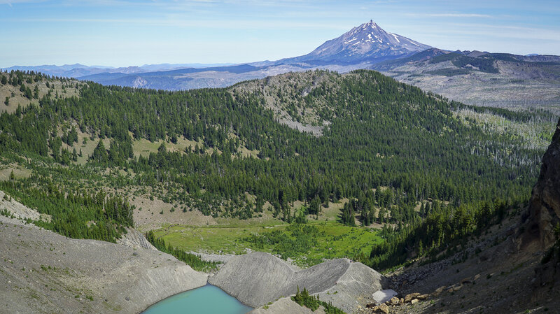 Besides the lake, many will take the 5.3 mile round trip hike (permit required) above the lake to Tam McArthur Rim, gaining over 1200 feet in elevation to reach the rim. Typically the views from this spot are clear from Broken Top and the Three Sisters all the way to Mt. Hood. However, in recent years summer forest fires have added haze and smoke often obstructing the views.