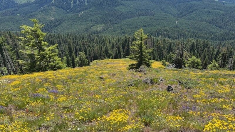The hike on July 6, 2024 was beautiful, but the day was very hot. During the return trip some of the wildflowers which were so stunning in the morning were starting to wilt. If the weather remains as dry as it is, the wildflowers will dry out as well.  All in all, the hike to Browder Ridge with the views of Mt. Jefferson was an out and back over 11 miles and 2500 feet of elevation gain and it can be stunning when the wildflowers are blooming.