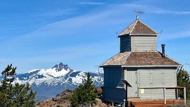 The trail to the top of Black Butte starts part way up the butte after a drive on a fairly well maintained dirt and gravel road followed by a poorly maintained dirt and rock road. Once you reach the trailhead (complete with stocked toilets), the two mile hike to the top of the butte can be accomplished fairly quickly. Hikers gain over 1500 feet in the two miles, but the Cascade views from Broken Top to Mt Adams can be spectacular on a clear day.