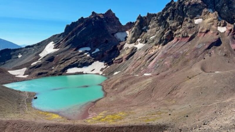 Each year we hike to Broken Top from different trailheads, often arriving at our final destination at No Name Lake, the beautiful glacial aqua blue lake located on the eastern edge of the mountain. One of our favorite hikes includes first a trek to Tam McArthur Rim overlooking Three Creeks Lake outside of Sisters which in itself can be the destination for many. For us, this extended hike passes Tam McArthur Rim on the well marked but "not maintained" trail to Broken Hand and then to the rim overlooking No Name Lake. The total trip for us includes a side trip north of Broken Hand into the safer, but longer path around Broken Hand and then up to the rim. This hike exceeds 10 miles and 2000 feet of elevation gain, but is well worth the trip for the beauty of close views of all Three Sisters and Broken Top. At one point on the hike, views from Mt. Bachelor to Mt Hood are visible - 9 total Cascade Peaks.