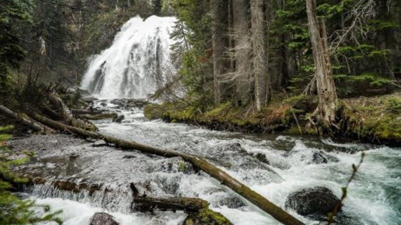 We have hiked Chush Falls several times, usually during the fall or winter with snow and ice. However, this Memorial Day weekend we elected to take the hike in the Three Sisters National Wilderness snow free. Unlike earlier hikes, many of the recently downed trees from the 2017 Milli Fire had been cut which enabled us to more easily hike the first two miles. However, the last quarter to half mile to the viewpoint had yet to receive this attention and scrambling over and under downed trees can always create challenges. The viewpoint overlooking Chush Falls is fairly obstructed by trees, so we typically take the very steep path down to the base of the falls, a path which should only be taken by people who are fit enough to make it both down and up. We had never seen the 60 foot Chush Falls as full as it was with the snow runoff from our wet winter really impacting the rivers and streams. Unlike winter time, if we got close to the falls, we would have been quite wet so we stayed a bit back and enjoyed the view from a distance.